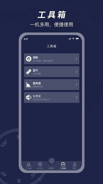 方位指南针手机版是由成都森淼湖公司推出的一款多功能手机工具应用。这款软件不仅具备基本的指南针功能,还能帮助用户定位位置、测量距离、检测声音,并提供计步器、水平仪等多种实用工具。操作简单方便,界面设计也很美观流畅。