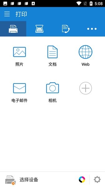 打开三星移动打印机app后,在首页点击底部的“选择设备”,如图所示;