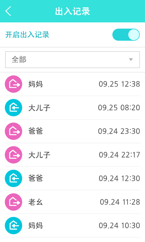 随时查询家人的出入记录,以及实时通知出入记录