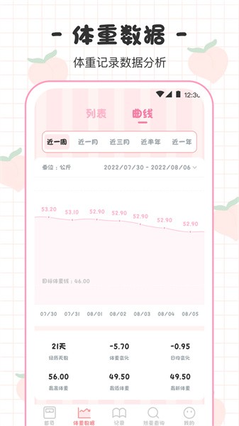 【图表数据】体重的变化一目了然,还可查看体重的历史数据