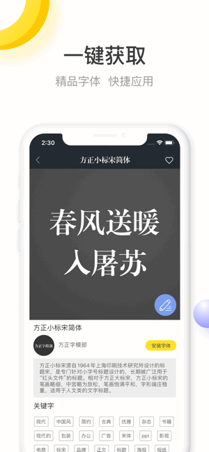 无需下载和安装字体,轻轻一点就可以在各类软件应用字体,任意字体,时刻让您专注于设计