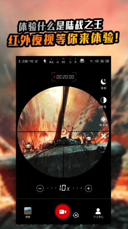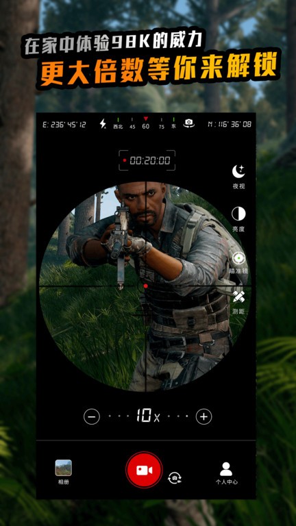战术望远镜app最新版可以自由调节放大倍数,支持红外夜视功能,可以感受虚实结合的场景效果,让手机的摄像头变成望远镜,看的更远更清晰,自带瞄准镜、能够调节亮度和开始夜视效果,还能进行测距哦!
