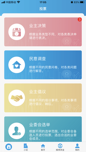 6、可以在线进行业委会选举和维修资金使用的表决,为用户提供了极大的便利;