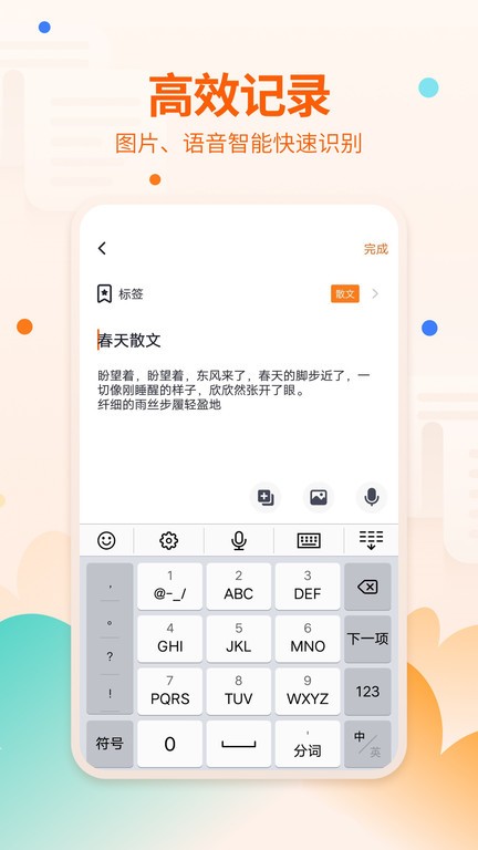 快记备忘录最新版能记录生活点滴的一个手机备忘录,把生活中遇到的事情记录下来,在保存美好的同时,还能将不同事件进行规划,看看哪些事情是需要去完成。不管是用文字、图片还是其他方式记录都能轻松搞定。