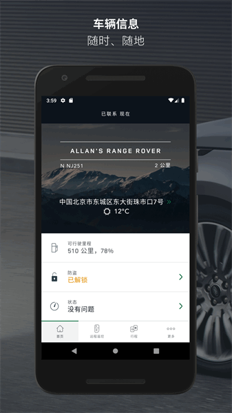 路虎智能驭领远程遥控安卓版是搭配连接路虎旗下汽车使用的远程控制管理应用软件,在线显示车辆信息,随时随地查看,远程遥控,灵活调节,意见设置管理,记录实时行程历史信息,还提供安全防盗、智能预警、闪灯鸣笛等功能,操作十分简单!