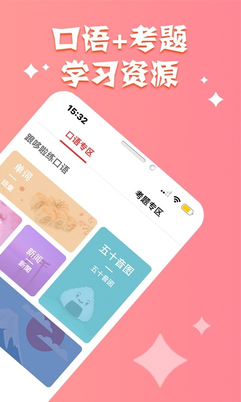 板块内容有:日语五十音图、日语单词、日语阅读、日语会话,每个学习板块都有日语标准发音即使是零基础学日语也可以轻松掌握。