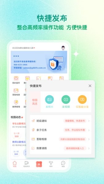 5、优质服务:提供实时视频、安全接送、家校互动等服务;