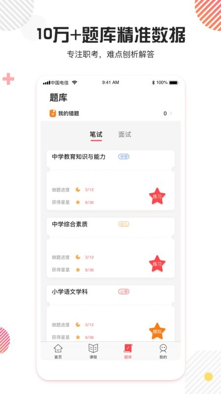 教师资格证题库手机版帮助想要考教师资格证的小伙伴们可以快速的完成自己考试规划,从简单的知识脉络梳理到逐渐丰满自己的学习树,都是可以循序渐进完成的,轻松解锁各种课程和真题,学习更加方便!