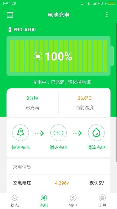 3、智能动态算法预计出电池电量充满的时间,机器自学习让您的充电智能方便