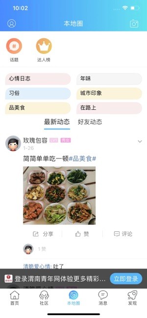 --渭南青年网APP栏目设置更合理、版面更美观,网友发帖、互动更方便。同时设置网友发帖、分享奖励机制,签到有奖、爆料有奖、分享赚钱……