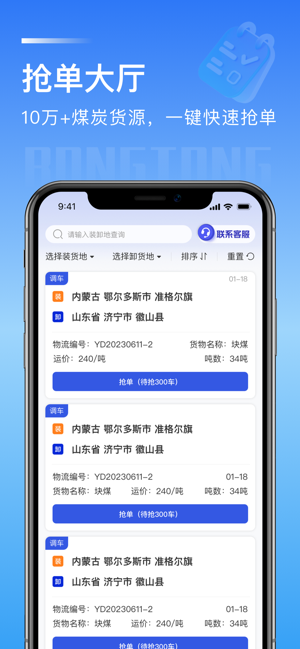 海量煤炭货源汇聚,总数突破十万大关,为您提供源源不断的运输机会。一键操作,即可迅速抢下心仪的订单,让您的运输业务不再受限于等待与寻找之中。