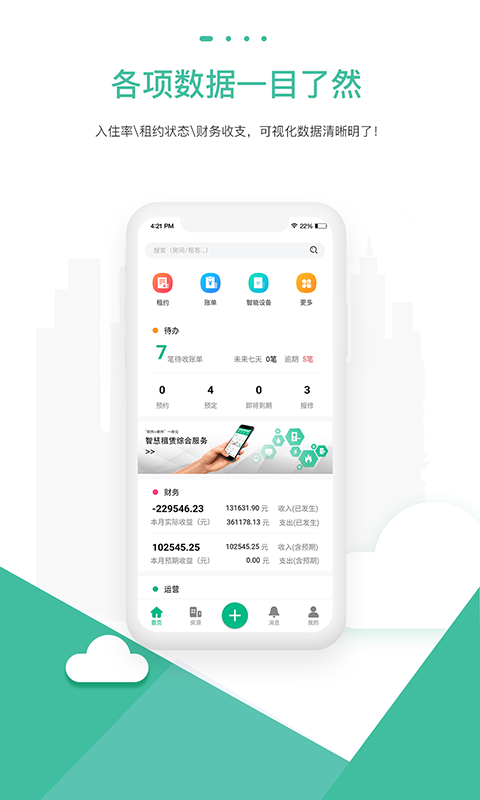 线上收租、一键催缴、手机断电 事务通知、报修上门通知。