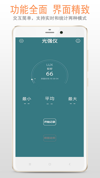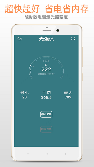 使用您的设备的光线传感器,将你的手机变成感光仪器,并数字化展示;