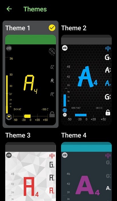 datuner安卓版虽然是英文版页面,但软件的功能布局也十分简单易懂。用户可选取所需要的调音功能来识别自己弹奏出来的音乐是否在音准上,支持多种乐器来进行使用,是一个很使用的手机多功能调音器。
