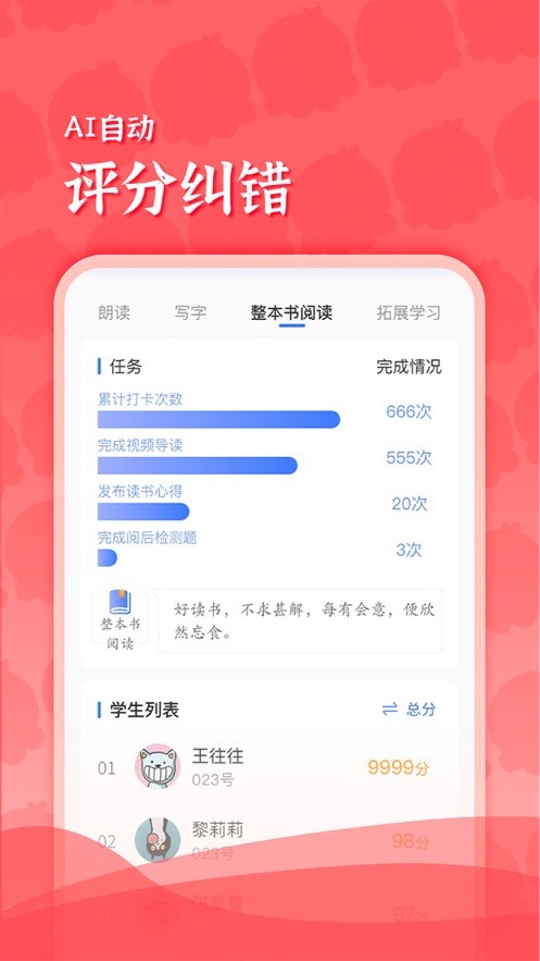多种任务一键发布:朗读、写字、整本书阅读任务,随时随地一键发布