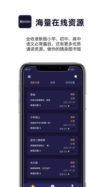 全收录新版小学、初中、高中语文必背篇目,还有更多优质诵读资源,做你的随身图书馆。