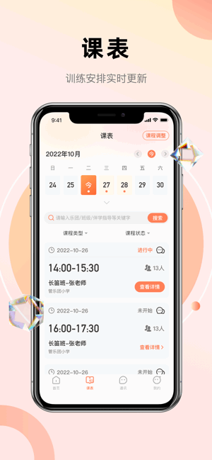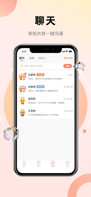 聊天功能也很实用,家校沟通一键完成,再也不用担心联系不上家长了。课程详情页更是清晰明了,所有课程情况一目了然。最让我觉得方便的是通知公告,发布信息后成员都能及时查看,效率提升了不少。