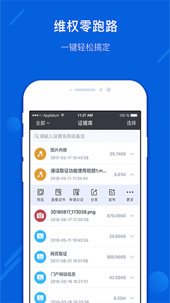 可以进行现场录音取证、手机拍摄取证、手机录屏取证、通话录音取证等,收集证据保存