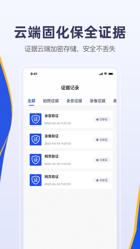 快取证是一款集拍照、录像、录音、录屏及网页取证于一体的安全电子取证软件。基于多种电子专业技术,保证取证过程与证据的真实性并具有法律效力,为您提供便捷、安全的电子证据的获取、存储、调取服务。