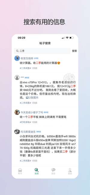 校园集市软件是面向大学生提供校园社区交流分享的应用平台,可以在这里发现校园生活的新鲜事情,掌握最新校园动态,还可以在线搜索查询想要的信息和校园服务,与同学进行交流分享,关注感兴趣的帖子,自由发帖,打听求助,操作简单!