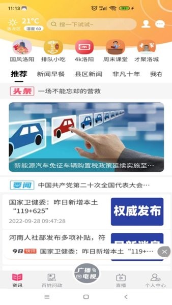 2、三大功能区分别为资讯、服务、社交。详尽、及时、权威的全媒体洛阳新闻就在“看洛”!