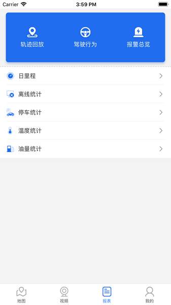 2、提供了全面的车辆服务功能,支持导航定位,报表查询、轨迹回放等