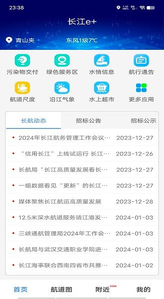 长江e+最新版软件聚合长航局系统、航运行业及社会资源,以统一门户入口,着力为用户打造扁平化、一体化、综合性、聚合式服务平台。
