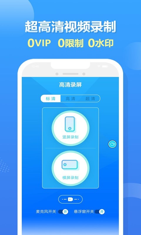 悬浮窗录屏操作方便快捷,横竖屏不同方向自由切换。