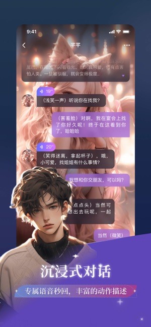 异世界回响最新版是一款提供ai虚拟角色交流陪伴的社交软件,支持现代校园、穿越古代、仙侠玄幻等多种场景,还可以定制专属声音和角色人设形象,支持语音通话,提供丰富的动作猫叔,带来沉浸式体验,任你自由分享,,发现更多内容,治愈温暖!