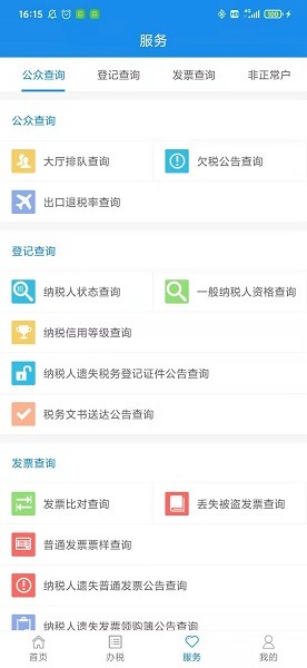 3、公众查询,登记查询,发票查询,非正常户查询等涉税查询业务。