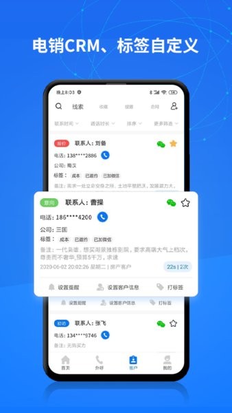 5.电话营销功能,有利于企业运行电话营销,能够更好高效的拨打每天的电话。