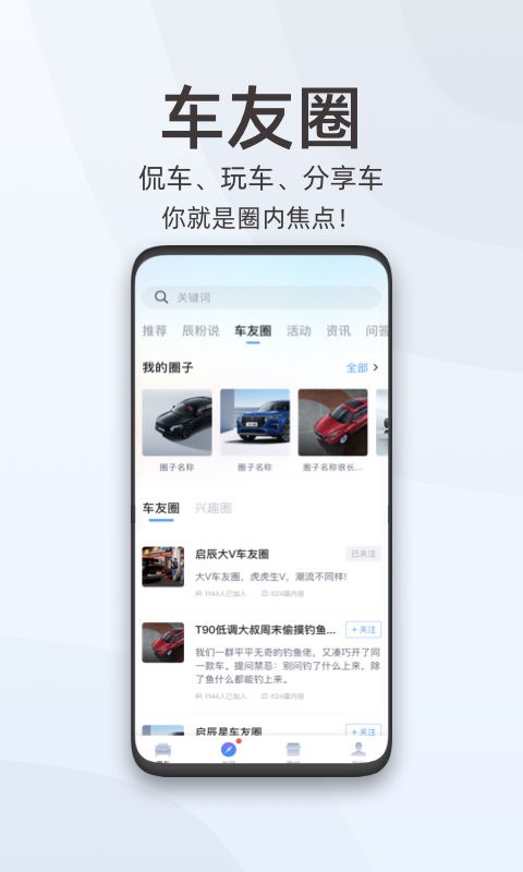 东风启辰智联app最新版支持在手机上绑定车辆,能够便捷的查看车辆的实时地理位置,可以及时的在手机上控车,为爱车提供了非常贴心的维修保养等服务,早车辆遇到危险和紧急情况时还可以呼叫紧急救援,能够查看其他车主发生的新鲜事。