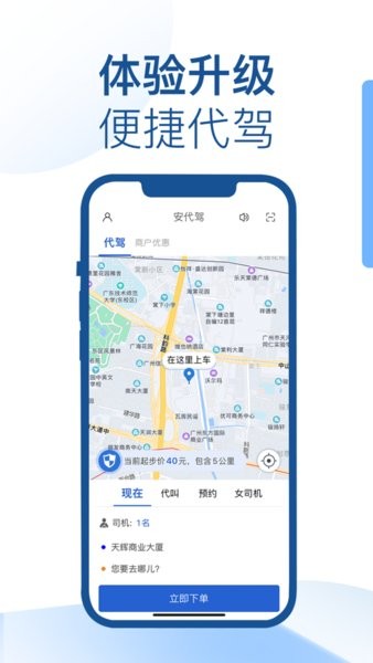 2.一键下单叫代驾,让你的照代驾师傅更轻松;