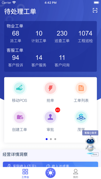 茂管家最新版本是一款提供物业管理服务手机软件,适合物业员工使用,打造线上工作台,集房产客户管理、业务运营、员工自助等功能为一体,待处理工单实时记录,全程跟进,一目了然,工单处理概况一手掌握,高效管理,提高工作业绩!