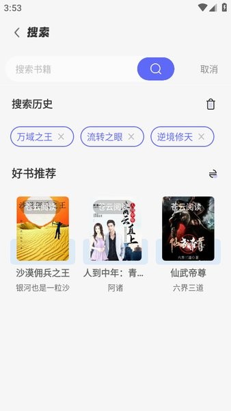 苍云阅读最新版免费又名苍云读书app,软件已经将书源内置了,并且有几十个书源,搜索要看的小说都会展示多个结果,这样就不用担心某个书源看不了了。新书速递功能,及时更新最新上架的小说,完全不用担心书荒。