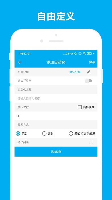 免root自动化助手最新版作为一款免root软件,功能非常之强大,用户可以在手机上自定义各种指令,并且执行起来非常方便,不需要手机进行root就能达到,适合的场景广泛,尤其适合用来进行连点,兼容多种机型的手机,可以让手机操作起来更方便更符合和人的使用习惯!
