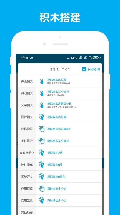 多种类型模拟操作都有,还能模拟用户输入,快捷输入;