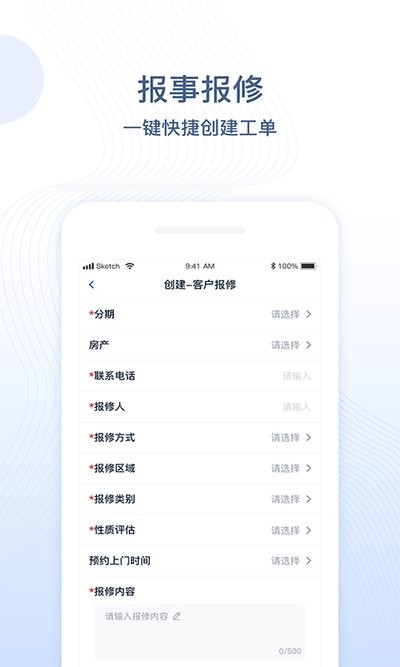 报修订单数据填写,保证填写的信息真实,方便公司快捷接单。