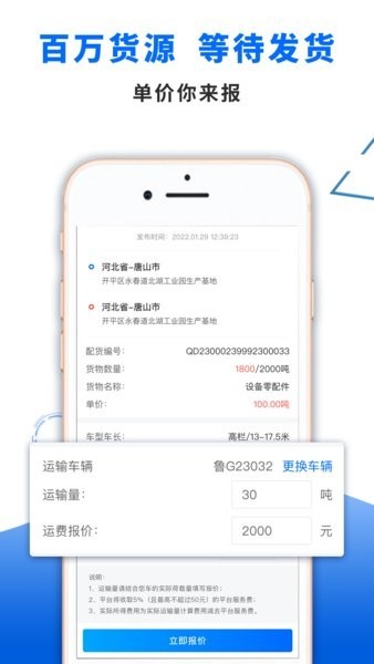 司机打开定位之后能够获得平台推荐的附近货源订单;