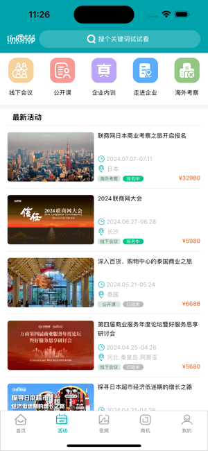 2、新增活动板块,活动增加日程、报名、签到、资料下载、展商信息等功能