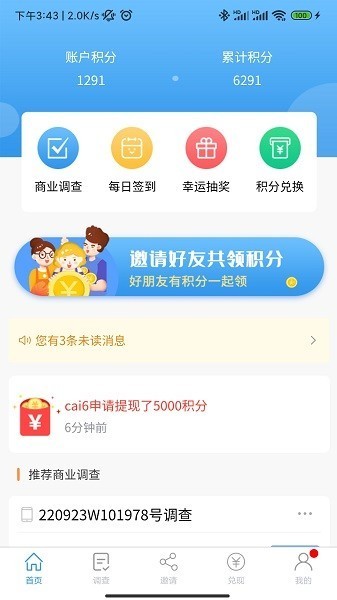 这个app的功能也挺多的,除了做调查,还能抽奖、查明细、收消息啥的,操作起来应该很方便。特别是提现的时候直接用手机操作,不用电脑也能搞定,这点特别方便。而且很多问卷都是实时更新的,不用担心找不到任务做。