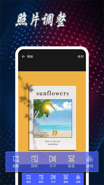 它还有多种模板和滤镜选择,文字编辑也挺方便的,可以添加多颜色的文字,让照片更有个性。如果你喜欢修图或者拼图,这个软件绝对值得一试!