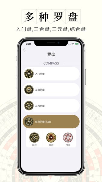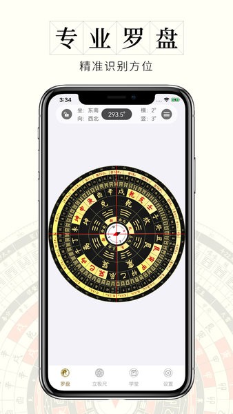 内置了数种专业风水罗盘,包括:简单罗盘, 进阶罗盘,高级盘等罗盘;