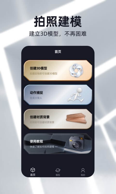 建模元宇宙是一款通过拍摄实物照片来创建3D模型的建模软件,创创建出来的3D模型可以三维看图,进行VR看图。还有动作捕捉模式把人体转换成火柴人模型。