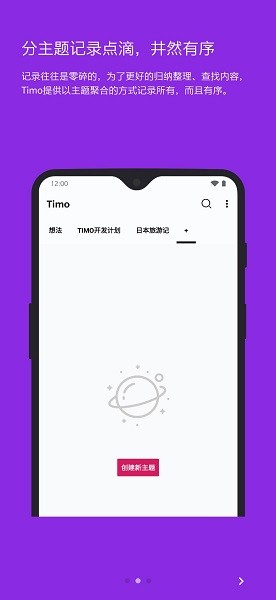 记录往往是零碎的,为了更好的归纳整理、查找内容,timo提供以主题聚合的方式记录所有,而且有序