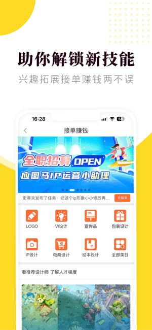 2、提供接单约稿平台与达人IP孵化计划,帮助用户提升技能并实现绘画梦想,在线展示自己的绘画作品,满足了绘画爱好者的各种需求。
