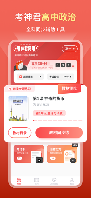 高中政治最新版是一款用来备考高中政治的辅导学习软件,全科同步辅助,高考专题高效练习,题库智能刷题,模拟演练,还提供错题本巩固,查漏补缺,做题数据统计分析,不断提升,掌握知识要点、考点、重点难点,使用方便,是高考的好帮手!