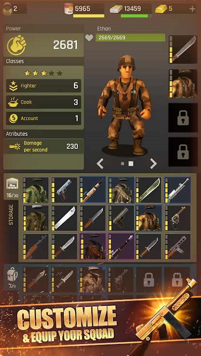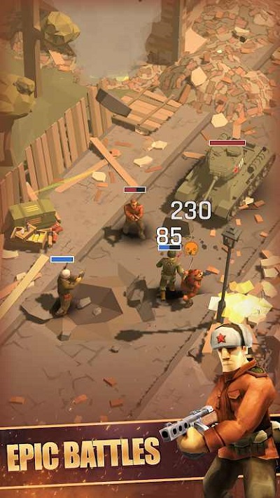 探索避难所周围的后世界末日世界,在战斗任务中为你的武器库掠夺装备和武器,训练你的小队,为救援行动装备和武装新武器,从敌人的监狱中释放俘虏并增强您的队伍。保存强大的武器,与二战坦克和狙击手进行激烈对抗