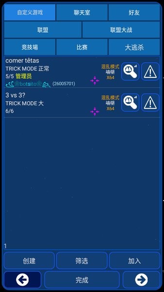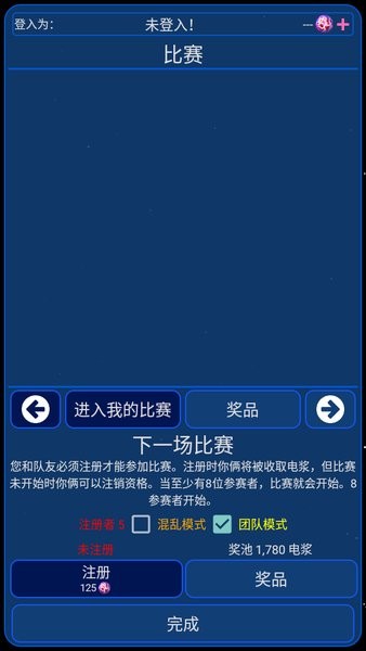 1、进入游戏:在界面下选择服务器,自己在那个区域就选哪。游戏模式,分为FFA,队伍,生存,足球赛,统治等模式。黄色的mayhem模式是加强版,选择以后游戏场景中会添加旋转障碍物以及道具等,更加刺激。再下方选择单人游戏还是多人游戏,左侧1P是单人,打的是电脑,中间三个人头是多人联网,和真人对战!