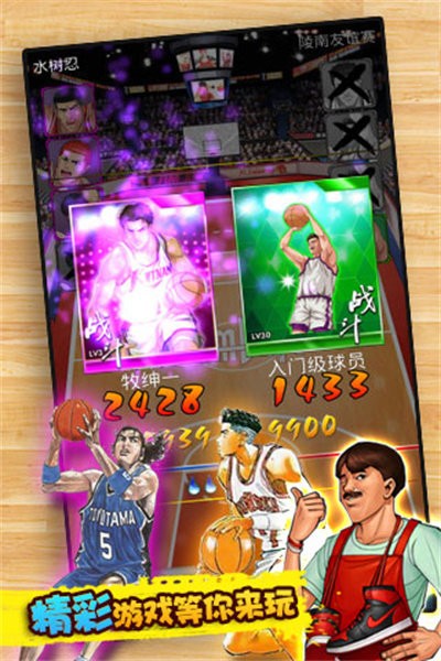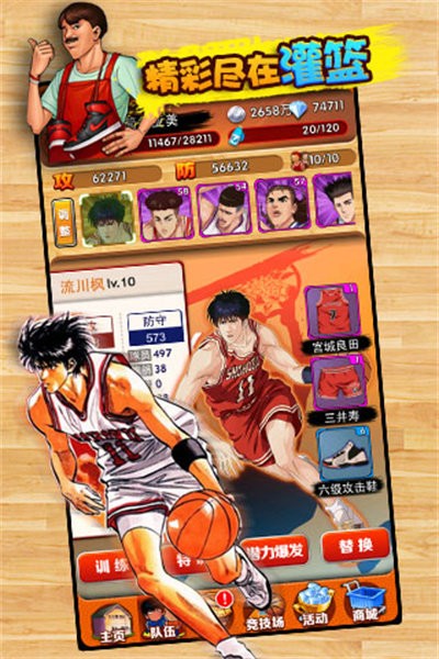 经典漫画改编题材卡牌手游,游戏以80、90的热血青春动漫灌篮高手为背景,用3D真实对战效果重现漫画的经典球队和经典人物,玩家可以在游戏中搜集樱木花道、流川枫、仙道彰、牧绅一等人物卡牌,并通过球员羁绊、球员装备、位置训练等培养形式,完美的经营球队,还可以体验全国大赛、真人PVP挑战赛、巅峰之路试炼等多种模式,最终培养一个属于自己的王者之师。